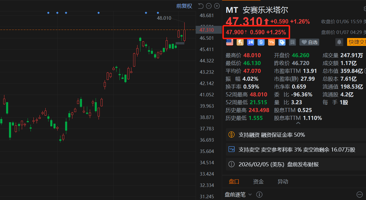 欧洲最大的钢铁集团安赛乐米塔尔(MT.US)盘前续涨1.25%。消息上,罗马尼亚UMB公司将斥资1250万欧元收购了安赛乐米塔尔伦布拉德工厂,近年该公司持续剥离非核心资产,以压降债务、削减成本并聚焦主业。另外,安赛乐米塔尔与法国电力公司签署了一项关于长期供应低碳、具有竞争力的电力的核电生产配额合同。
