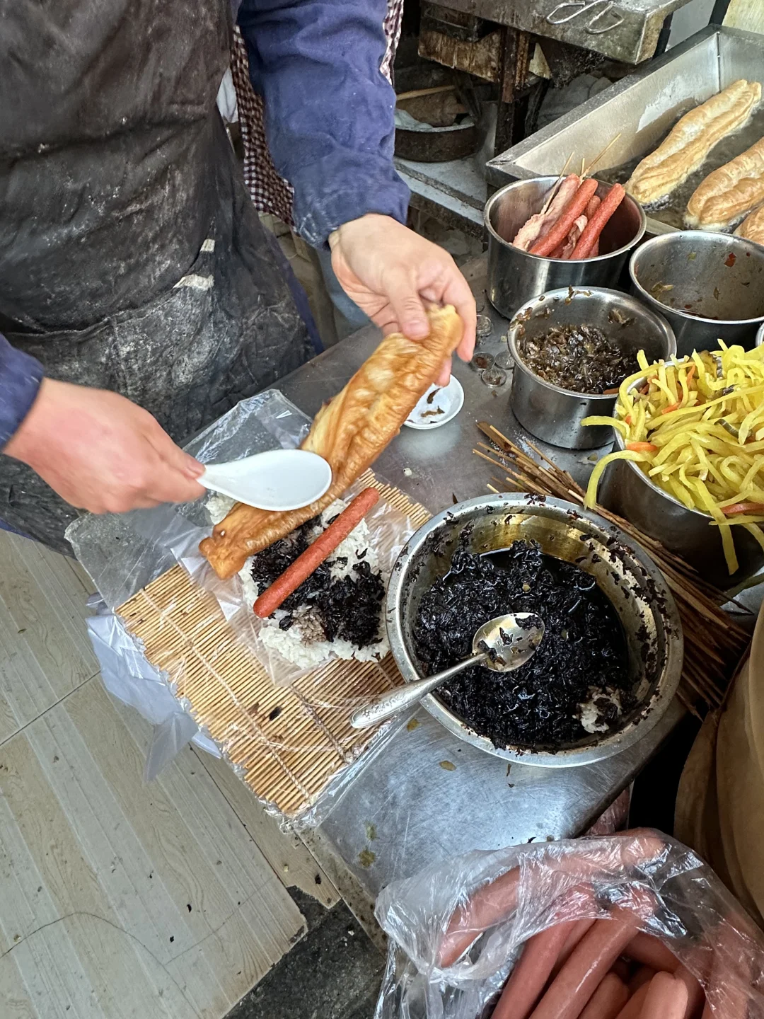 梅干菜粢饭团!加了油条和香肠 6r 谁懂这一口啊啊啊!! 油条酥香不发硬 饭团好香糯!趁热吼吼吃!!! 做余姚人民真幸福!