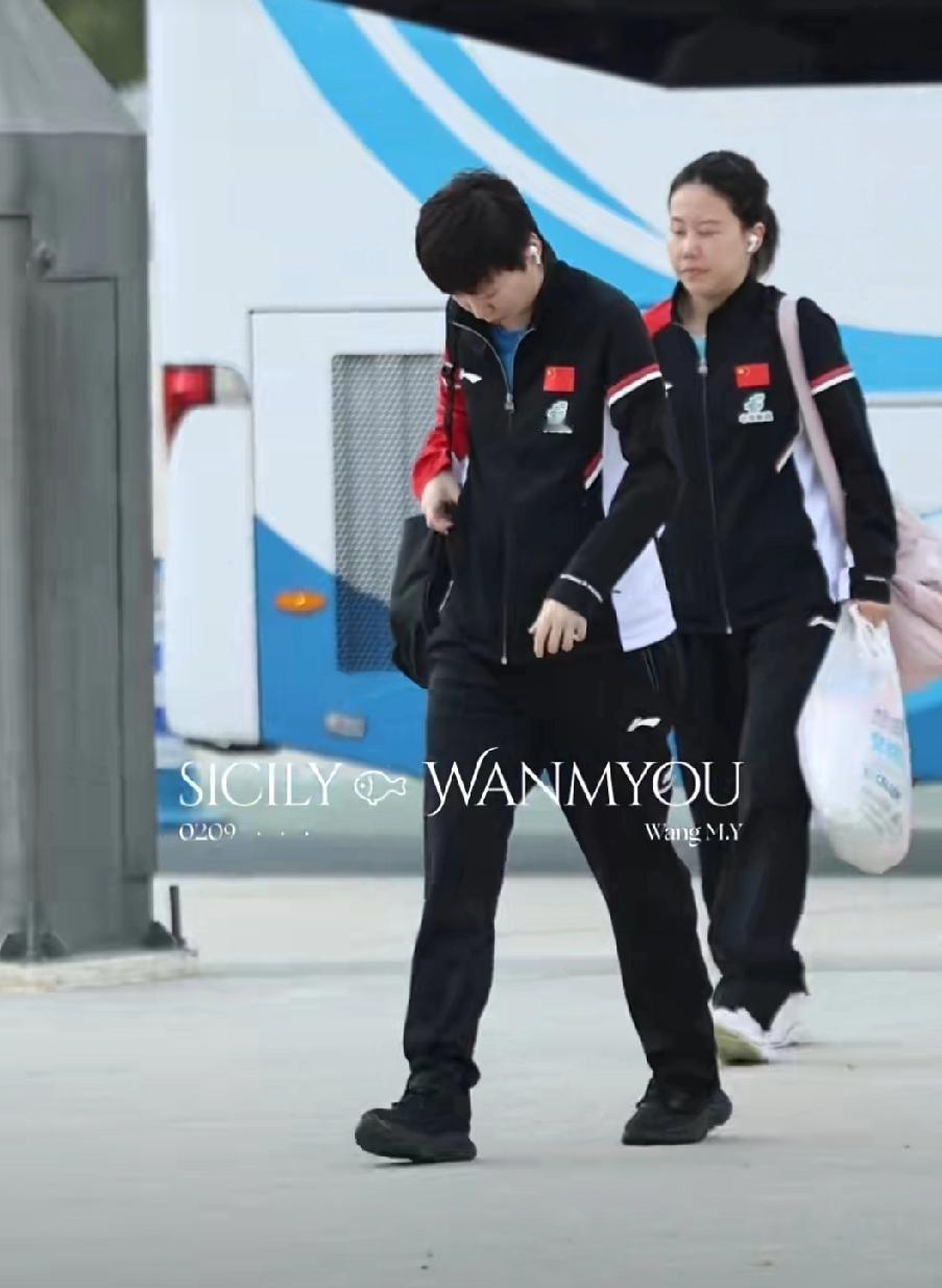WTT多哈冠军赛,王曼昱今日上训。今天是多哈当地时间下午五点多,王曼昱才和队友一