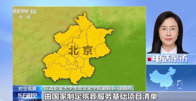民政职业大学生命文化学院副院长徐晓玲:由国家制定殡葬服务基础项目清单,包括遗体接运、遗体存放、遗体告别、遗体火化、骨灰寄存、生态安葬以及政府举办的殡葬服务机构提供的骨灰格位安葬共七项。