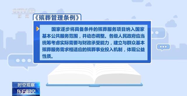 《条例》明确,国家逐步将具备条件的殡葬服务项目纳入国家基本公共服务范围,并动态调整。各级人民政府应当统筹考虑实际需要与财政承受能力,建立与群众基本殡葬服务需求相适应的殡葬事业投入机制,体现公益性质。