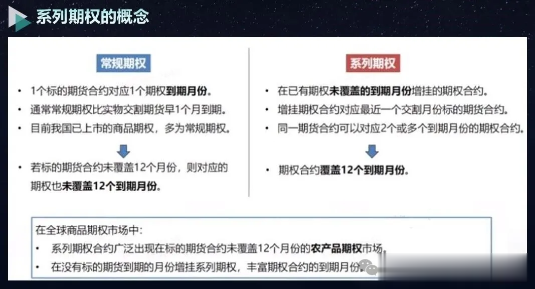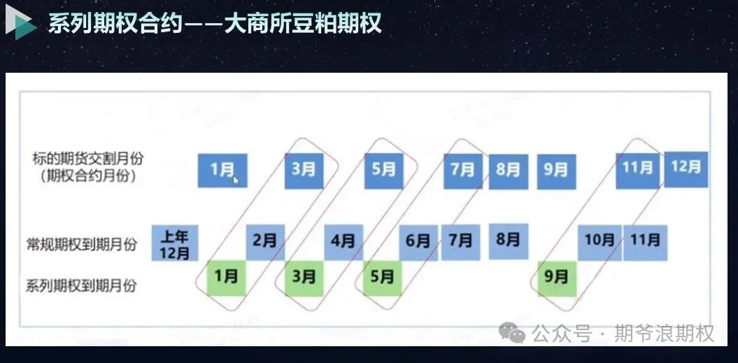 那就先要区分一下豆粕和玉米的“常规期权”和“系列期权”。
