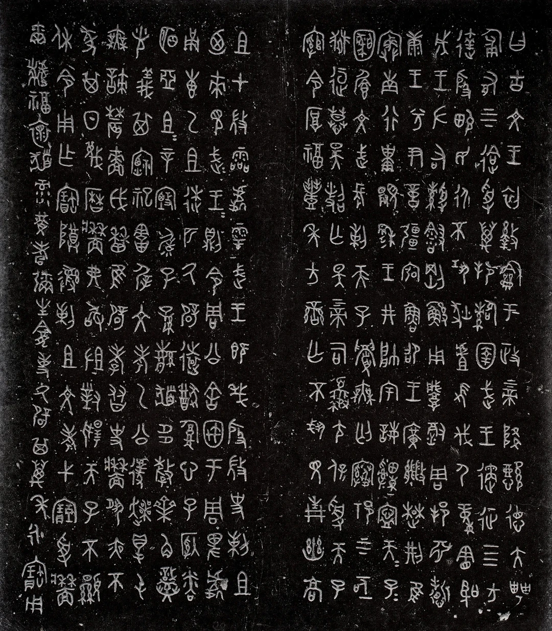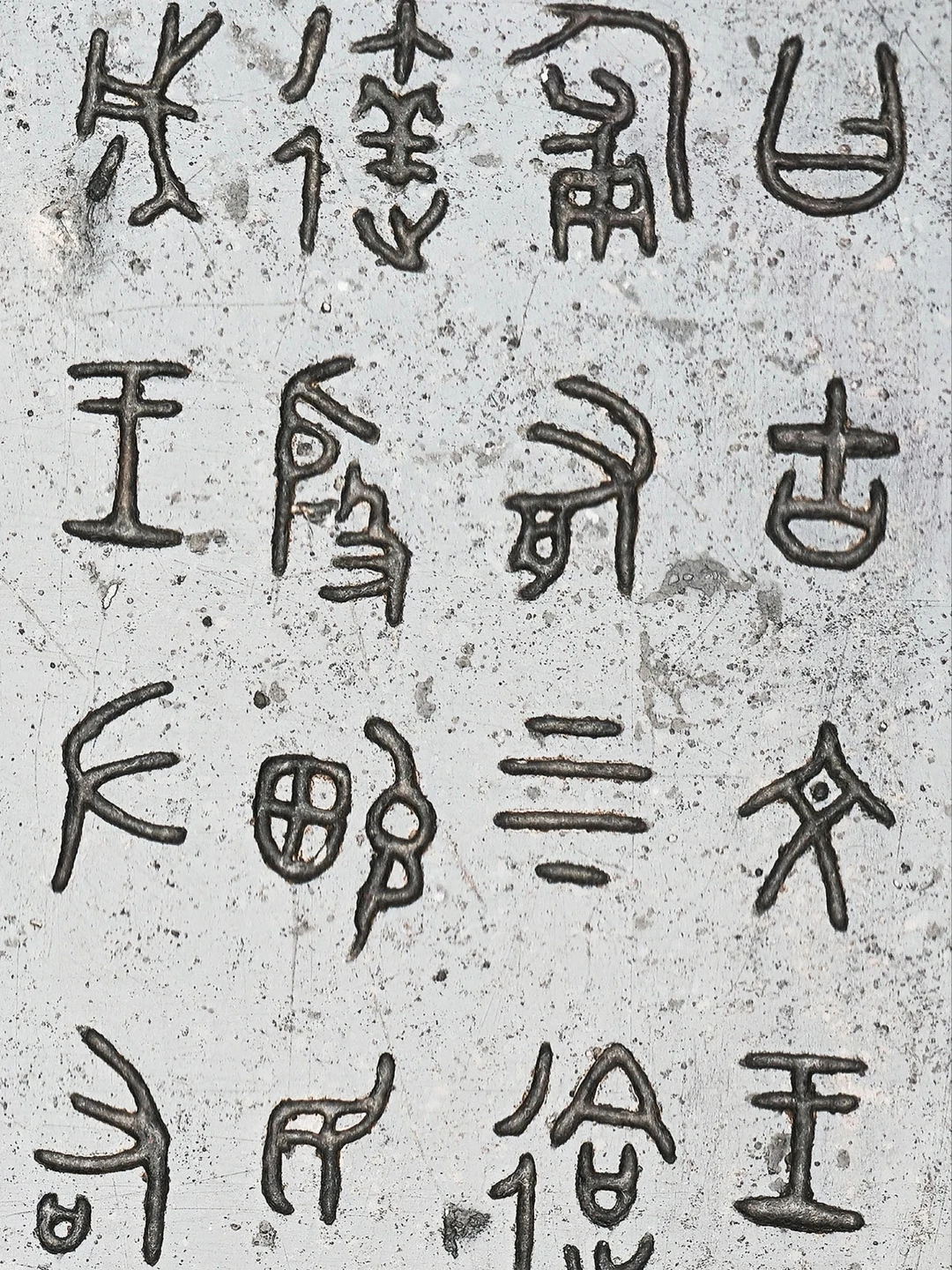 西周《墙盘》又名《史墙盘》,墙盘为西周恭王时期作品。器形宏大,制造精良,周圈饰有重环纹。1967年于陕西扶风庄白村出土。盘内铸有铭文二百多字,分为两部分,前半记叙西周时期各王的主要史迹,后半记叙做器者史墙一家列祖的重要功绩。文章使用的四言句式,颇似《诗经》,措词工整华美,有较高的文学价值。铭文字体为当时标准字体,可做为西周中晚期书体风格的典型代表。 《史墙盘》释文: 曰古文王,初盩和於政,上帝降懿德大甹,匍有上下,䢔受万邦。圉武王,遹征四方,达殷㽙民永,不巩狄虘,伐尸童。宪圣成王,右绶刚,用肇彻周邦。康王,兮尹意宖鲁邵王,广楚荊。隹南行。穆王,井帅宇诲。宁天子,天子文武长刺,天子无匄。祁上下,亟慕,吴亡昊。上帝司夒,尣保受天子令,厚福丰年,方亡不窋見。青幽高且,才微灵處。武王既殷,史勅且乃来見武王,武王则令周公舍,於周卑处。乙且,匹氒辟,远猷心子。明亚且且辛,毓子孙,多孷,角光,义其烟祀。文考乙公,,屯无誎,辳啬戉隹辟。孝友,史墙夙夜不窋,其日蔑历。弗敢抯,對揚天子丕顯休令,用乍宝彜。刺且文考,弋受尔。福怀录,黃耇弥生,龛事氒辟,其万年永宝用。