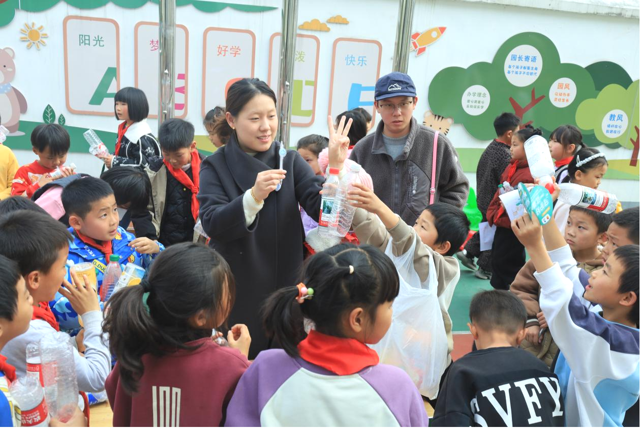 活动特别设置了室外环保快闪环节。同学们纷纷携带收集的废弃塑料瓶、易拉罐等可回收物来到现场,兑换笔记本、帆布袋等“生态礼物”。此次活动累计回收各类塑料瓶5000余个,这一环节不仅让同学们亲身体验“变废为宝”的循环经济理念,更深化了大家对资源循环利用的认知。