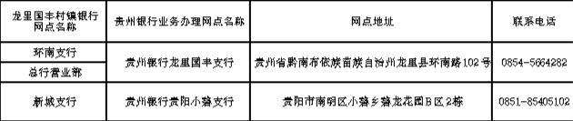 4.如对上述内容有任何疑问、建议,请拨打龙里国丰村镇银行服务电话:0854-5633568,或到原业务办理网点对应的贵州银行营业网点咨询办理。