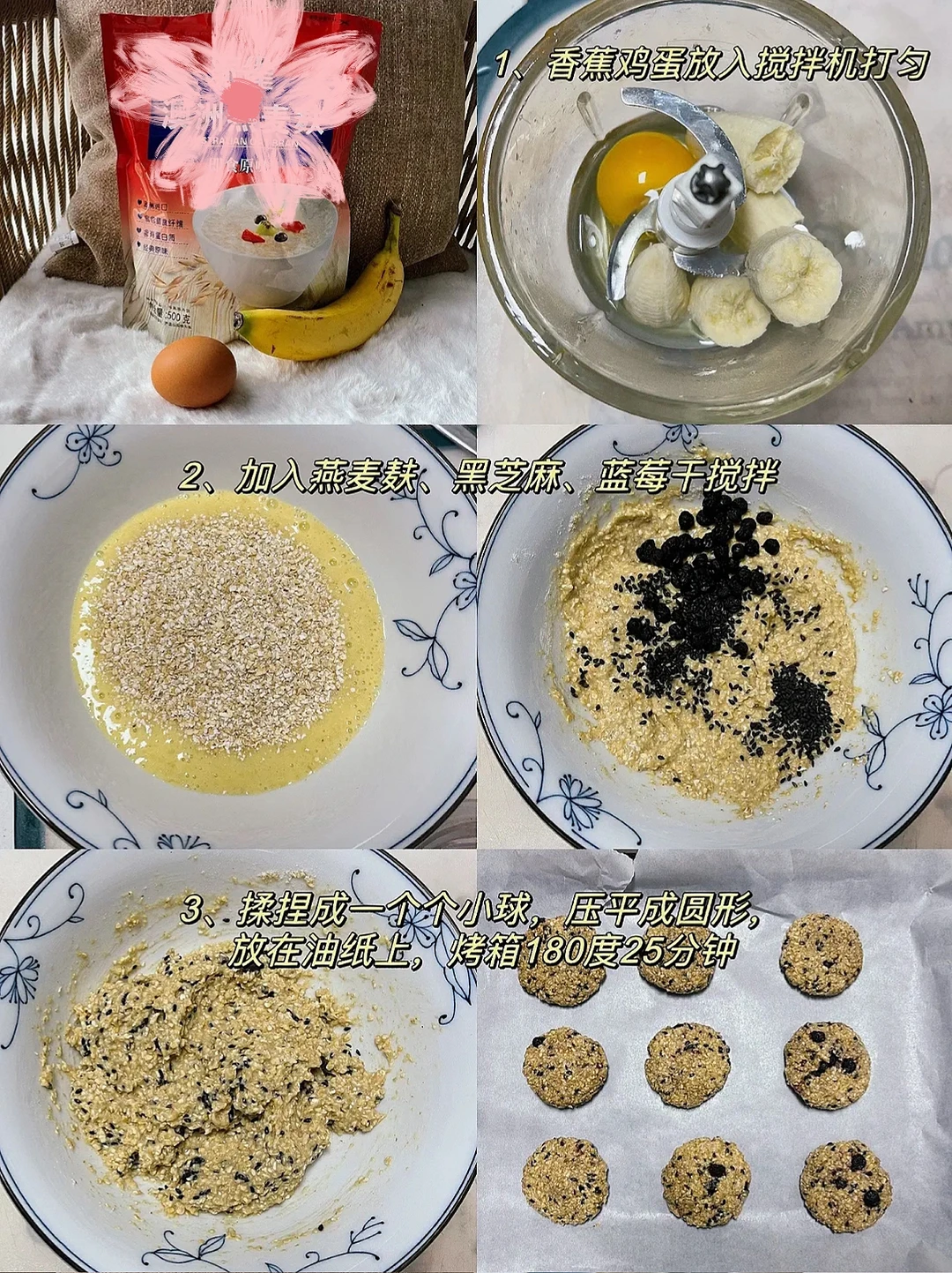 3️⃣香蕉燕麦麸皮饼
