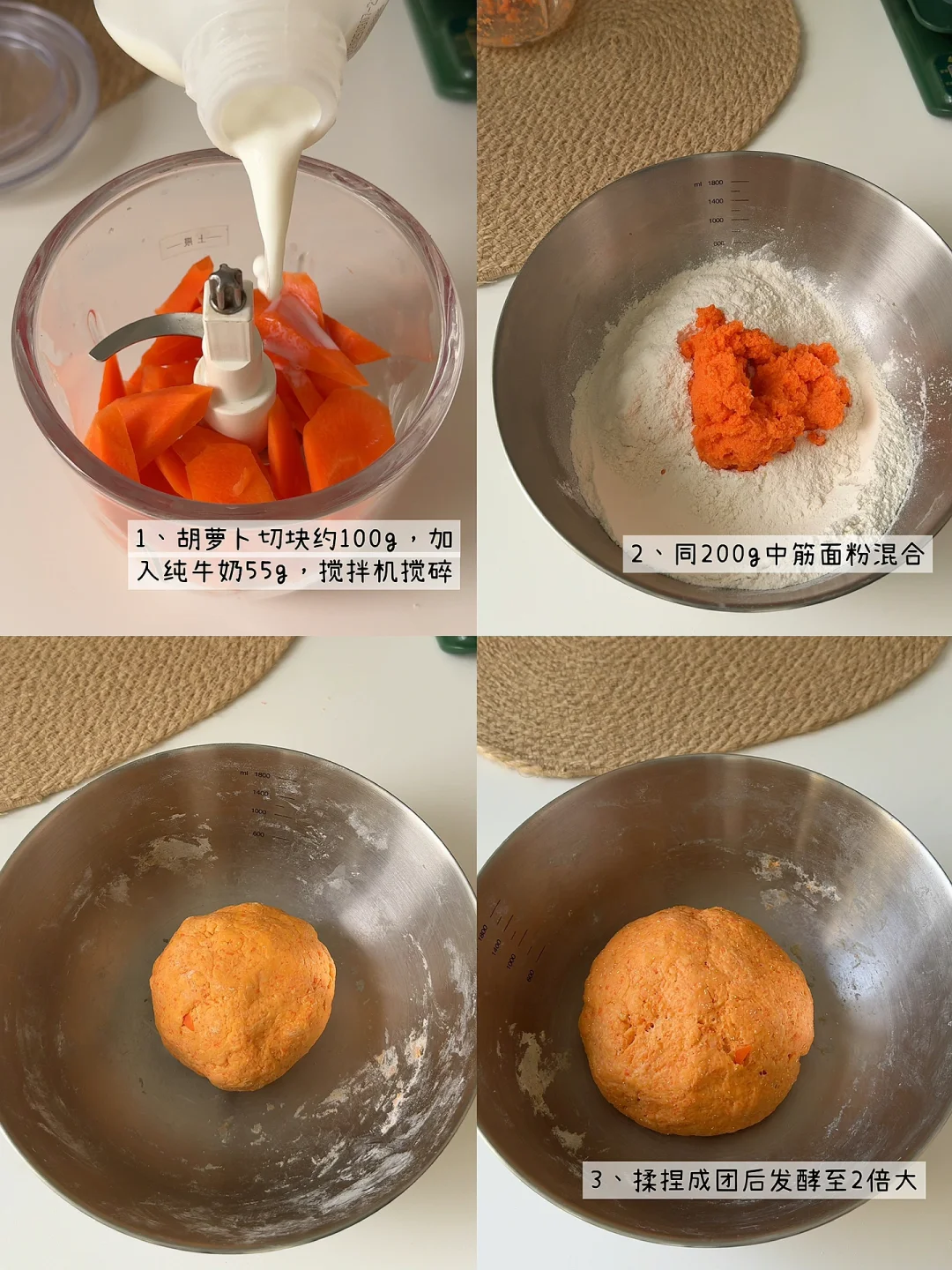 [向右R]食材:中筋面粉200g、胡萝卜100g、牛奶55g、酵母粉3g、葡萄干(可不加)