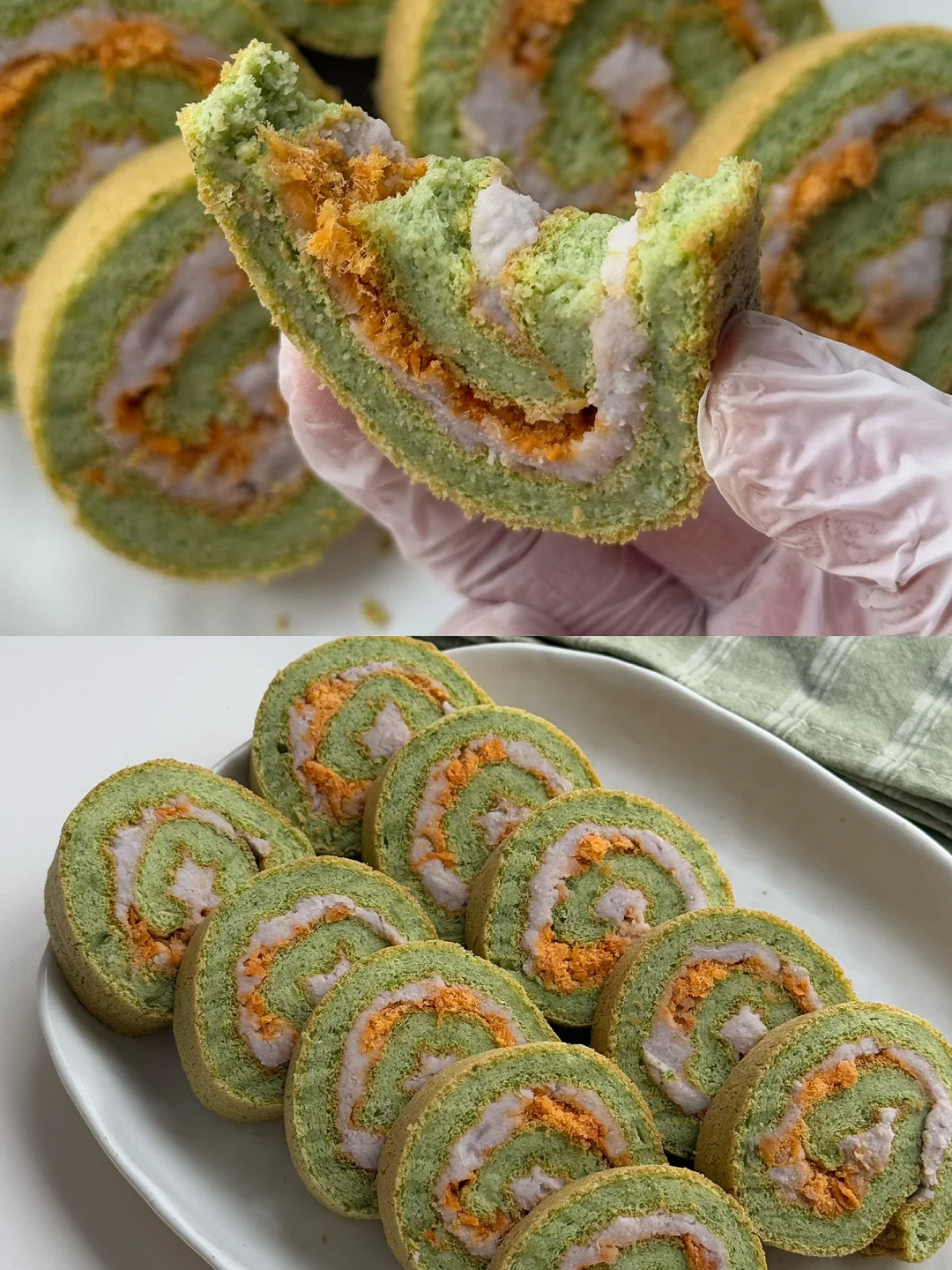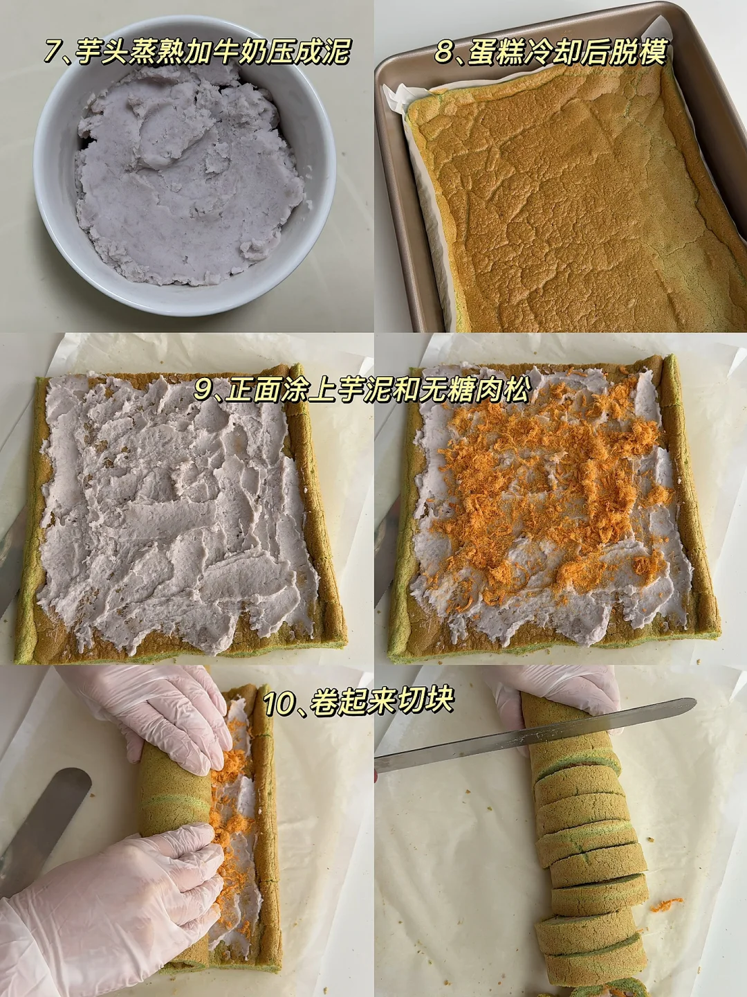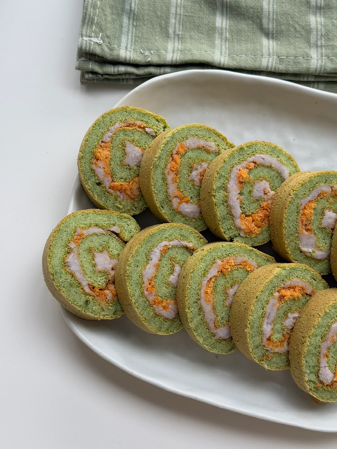 低卡健康菠菜蛋糕卷(内陷:无糖肉松芋泥)