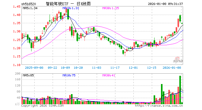 1月8日,智能驾驶ETF(516520)开盘跌0.74%,报1.348元。智能驾驶ETF(516520)重仓股方面,立讯精密开盘跌0.92%,芯原股份涨0.50%,拓普集团跌0.40%,豪威集团跌0.48%,科大讯飞涨1.34%,德赛西威跌3.00%,闻泰科技跌0.29%,欧菲光跌0.28%,均胜电子跌0.85%,思特威跌1.10%。