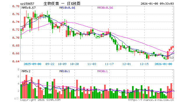 1月8日,疫苗ETF鹏华(159657)开盘跌0.30%,报0.674元。疫苗ETF鹏华(159657)重仓股方面,长春高新开盘跌0.15%,复星医药涨0.11%,智飞生物涨0.00%,万泰生物涨0.02%,沃森生物涨0.00%,华兰生物涨0.06%,药明康德涨0.79%,昭衍新药跌1.69%,丽珠集团跌0.79%,恒瑞医药涨1.80%。