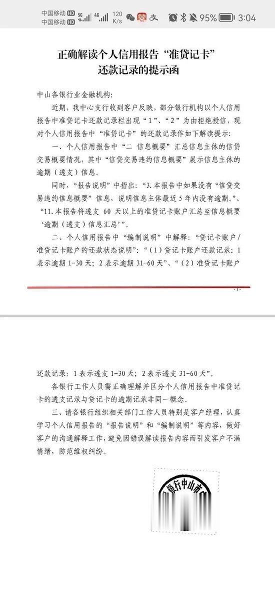 记者了解到,中国人民银行中山市中心支行在出具的《正确解读个人信用报告“准贷记卡”还款记录的提示函》提到:“准贷记卡账户还款记录:1表示透支1—30天;2表示透支31—60天。各银行工作人员需正确理解并区分个人信用报告中准贷记卡的透支记录与贷记卡的逾期记录并非同一概念。”