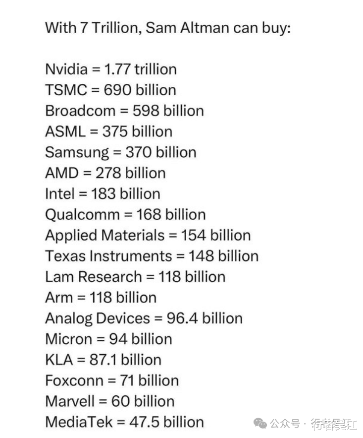 2月11日,ChatGPT创始人奥特曼兄弟两人,计划将筹集7万亿美元(折合约50万亿),哥哥山姆·奥特曼宣称,OpenAI会拿这笔钱发展自己的AI芯片,将要颠覆并且重塑目前的全球半导体格局!目前弟弟杰克·奥特曼已经筹集到了1.5亿美元,山姆·奥特曼则是与阿联酋方面和软银方面进行了深入谈判,计划投资建设AI芯片厂。英伟达黄仁勋听闻此消息后笑道:即便是全球所有GPU公司加起来也不值7万亿美元,看来黄教主对此一点都不担心。