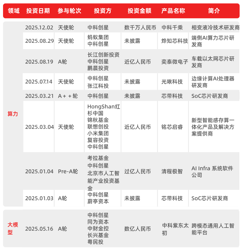 中科创星2025年公开可查的主要投资情况虎嗅制图