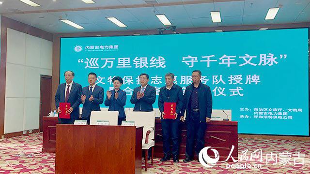1月7日,“巡万里银线,守千年文脉”文物保护志愿服务队授牌暨合作备忘录签订仪式在内蒙古电力集团呼和浩特供电公司举行。
