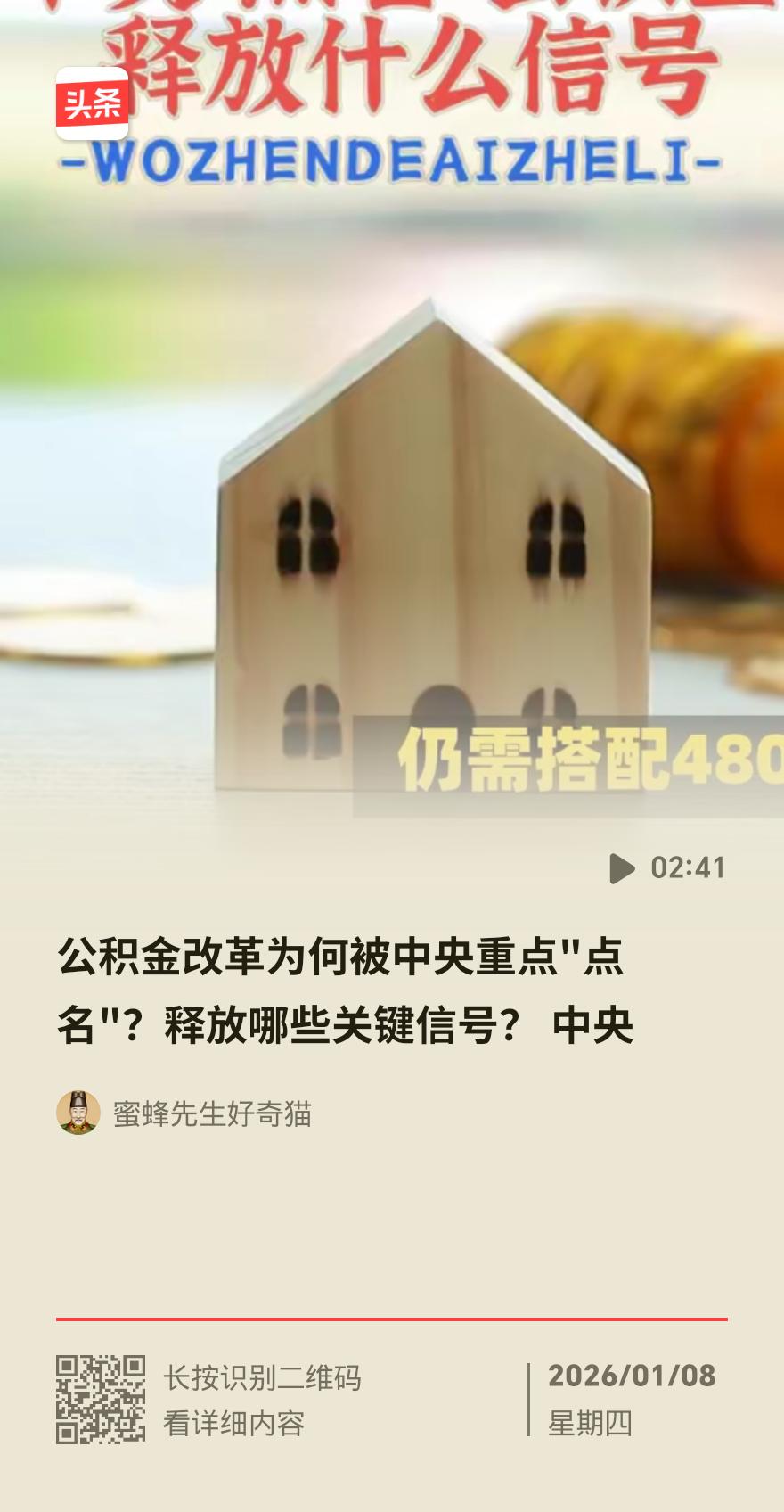 中央点名!公积金改革要来 事关你的钱袋子 2025年底中央经济工作会议将“深化住房公积金制度改革”单独提及,这是过去十年头一遭。随后的全国住房城乡建设工作会议更是7次提到公积金,释放出公积金将迎大调整的强烈信号。 目前公积金的两大核心用途提取和贷款,各地政策已在持续松绑。提取端,深圳可用来交首付,石家庄、苏州能缴物业费,天津、广州还能给老房加装电梯;贷款端,首套房5年以上利率低至2.6%,各地还在降首付、提额度、简流程。 不过公积金制度也存在痛点,账户存款年利率仅1.5%,闲置资金收益跑不赢通胀;一线城市高额房价下,公积金贷款额度有限,和商贷利差也在缩小。截至2024年底,全国公积金缴存余额已达10.9万亿元,较2016年翻了一倍多,盘活资金效能迫在眉睫。 此次改革是房地产政策组合拳的重要一环,契合当前楼市供求关系转变的新形势,最终目的是让老百姓用好用活公积金,住上更好的房子。 要不要我帮你整理公积金改革利好的不同人群清单?公积金 公积金政策 公积金政策