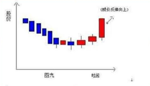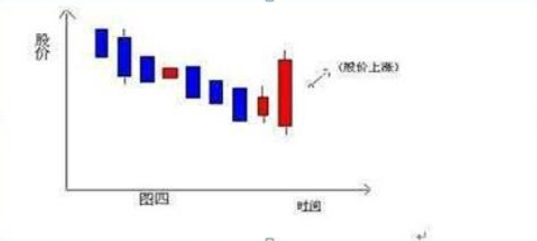 股价持续下跌,收出一根小阳线,紧接着又收出一根包容的大阳线,将小阳线包容在内,此种信号表明该股成功筑底,后市反弹行情将开启,可大胆进场。