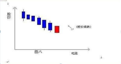 股价持续下跌,收出多跟阴线,随后出现低开高走的阳线,这明显是主力在给散户设陷阱,股价短暂停顿后还将继续下跌,此时应果断清仓。