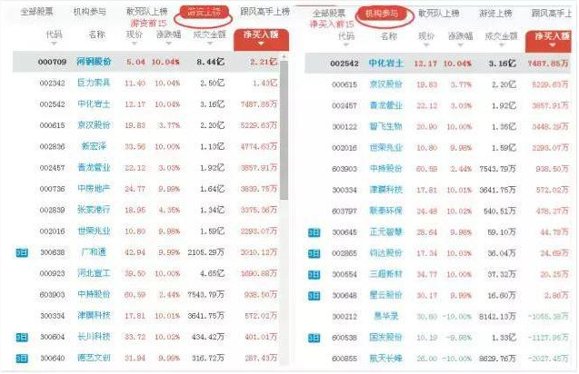 观察这些上榜个股是机构买入还是游资买入。越多机构席位大量买入后期行情越可期,若游资买入有则有可能是一日行情或是波段行情。若机构和游资同时看好某只或某几只个股,那么后期拉升的概率较大。
