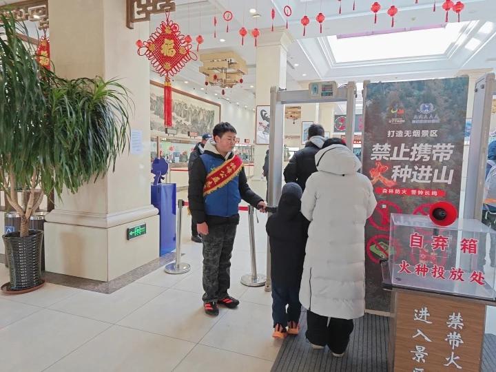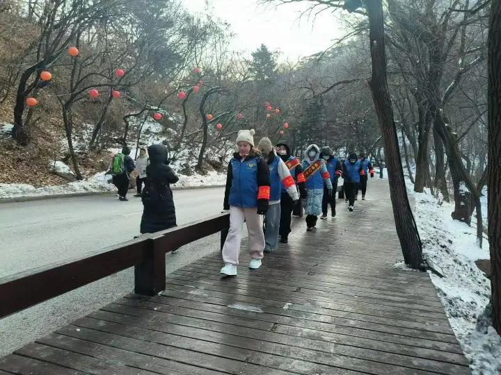 时值隆冬,寒风凛冽,却丝毫挡不住志愿者们的服务热忱。随着千山雪人节人气持续攀升,景区游客与车流同步增多,志愿者们顶着严寒驻守在停车场,有条不紊引导车辆规范停放、快速通行,高效化解假期停车拥堵难题。在雪人节核心游玩区域及景区沿途各服务点,志愿者们化身游客专属“活向导”,细致解答雪人打卡点位、游览路线、便民设施等各类咨询。同步开展文明游览引导,及时劝导不文明游玩行为,温馨提醒游客注意冰雪路面防滑、做好防寒保暖,全方位守护游客游玩安全,全力营造有序、文明、舒心的游览环境。