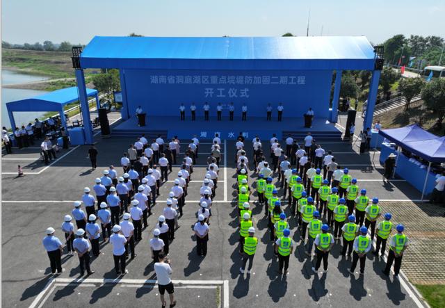 2025年9月16日,湖南省洞庭湖区重点垸堤防加固二期工程开工建设。(资料图片)