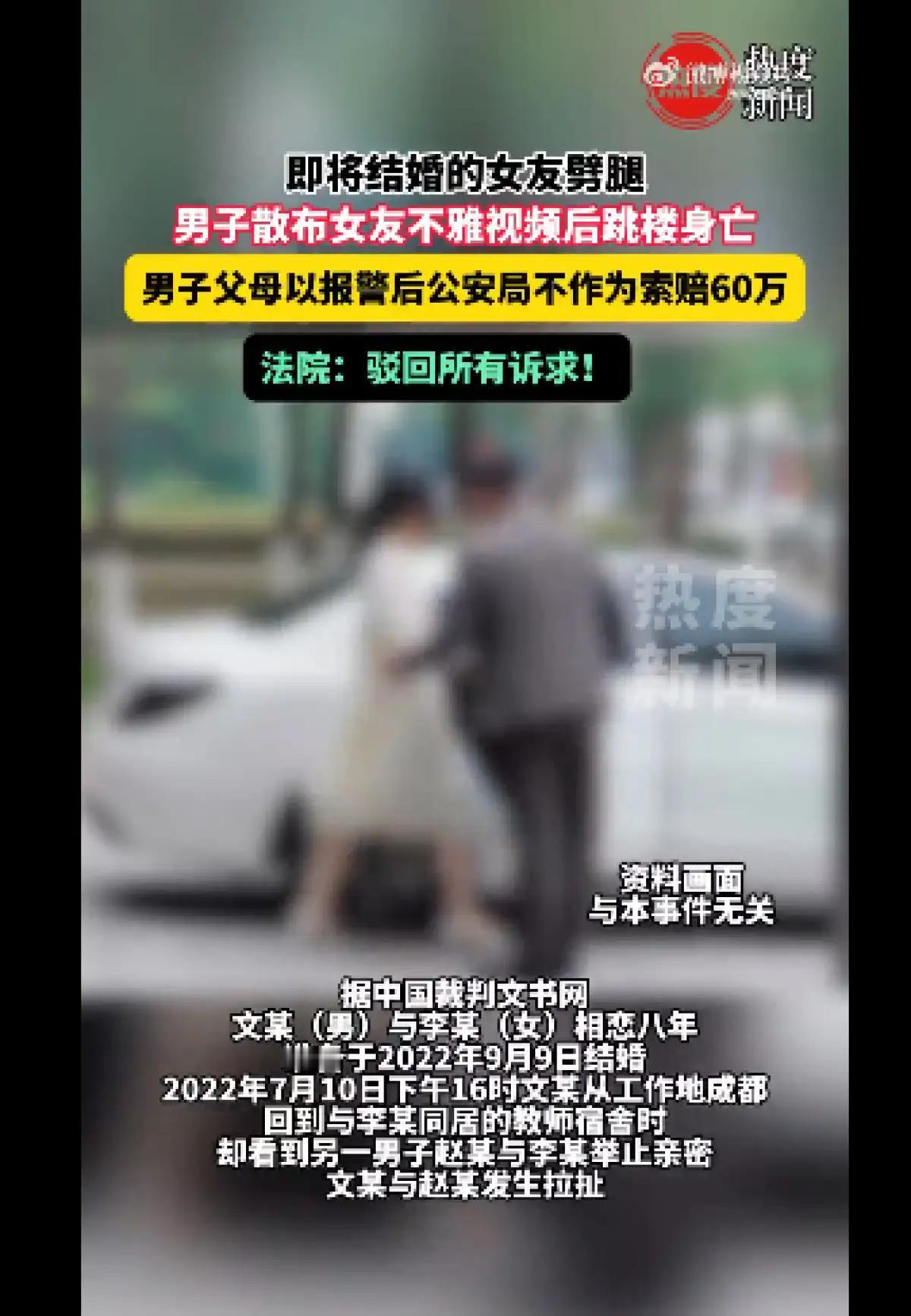 一起婚恋纠纷酿成的悲剧引发热议。文某与未婚妻李某相恋八年,婚期将近时,他撞见李某与他人举止亲密,愤而散布对方不雅视频,当晚便坠亡。 文某父母认为警方存在失职,起诉索赔60万元。法院审理认定,民警接警后已查监控、沿街搜寻,履职并无不当,遂驳回全部诉求。泄私愤曝隐私本就触碰法律红线,一时冲动最终落得两败俱伤的结局。