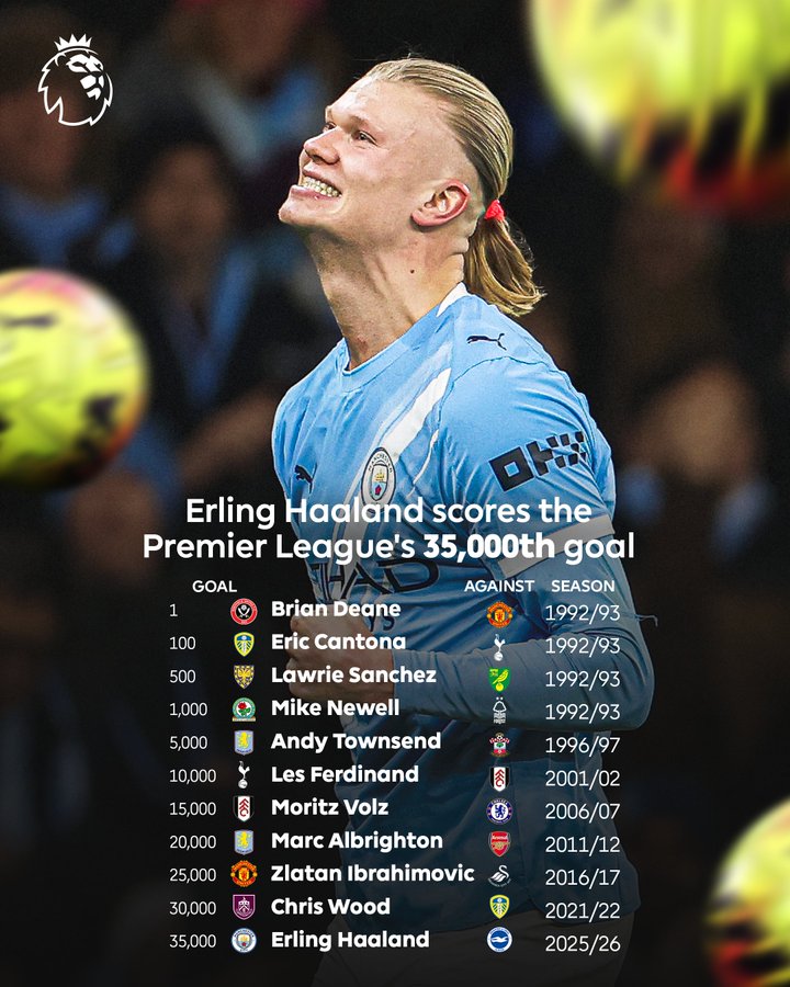 英超历史第35000球诞生!哈兰德打进英超联赛历史第35000球