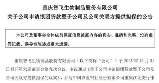 这笔巨额贷款将用于置换公司存量融资及补充日常营运资金。智飞生物的实际控制人蒋仁生先生及其配偶、其子蒋凌峰先生及其配偶为公司本次融资提供无偿担保。