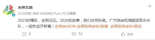 昨天广汽埃安的主播发视频,说今天广汽埃安将在永州直播给永州队送车,而且永州文旅和