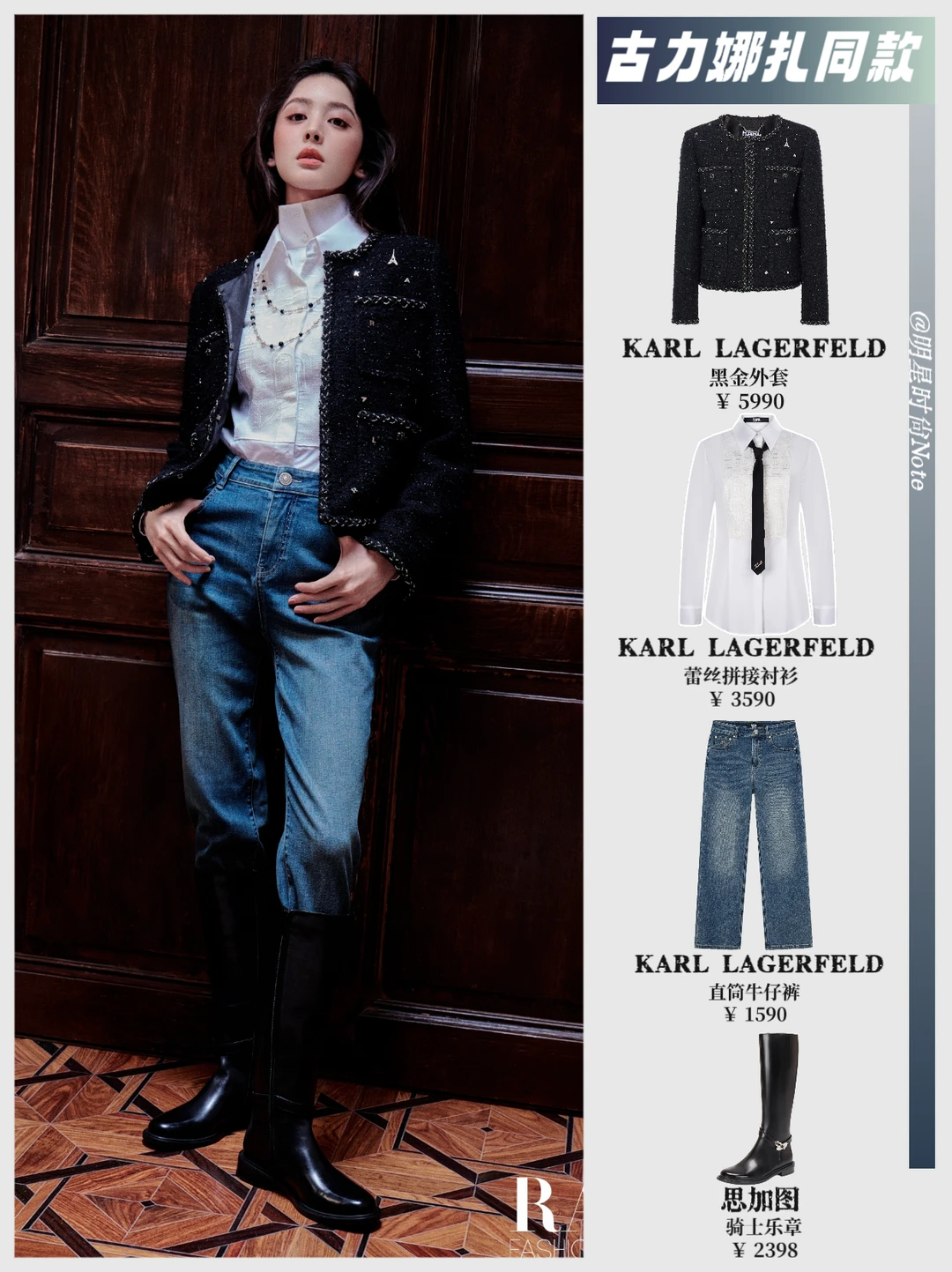 古力娜扎这组秋冬穿搭也太会了~😎 黑金外套上身好显质感,利落又大气~🧥 内搭蕾丝拼接衬衫,细节里藏着小精致~👔 下身配牛仔裤,休闲感和高级感平衡得刚好~👖 再踩双黑色长靴,腿线看着超优越~👢 整套穿法不挑场合,秋冬照着穿都合适~🍂 素材来源:古力娜扎 # 古力娜扎 #古力娜扎穿搭[话题]# #秋冬高级感穿搭[话题]# #明星同款[话题]# #古力娜扎同款[话题]# #ootd[话题]# #ootd每日穿搭[话题]# #时尚穿搭[话题]#