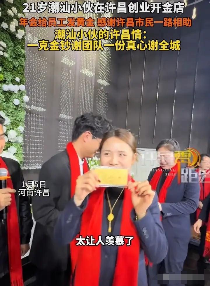 近日,一位21岁年轻老板的暖心操作火遍全网。为答谢员工一路相伴与付出,他豪气出手,给每位员工都送上1克黄金福利。 小小金饰虽分量不重,却满含诚意与认可。这份别出心裁的嘉奖,尽显老板的大方格局,让员工暖心又振奋,网友直呼:这才是别人家的神仙老板!