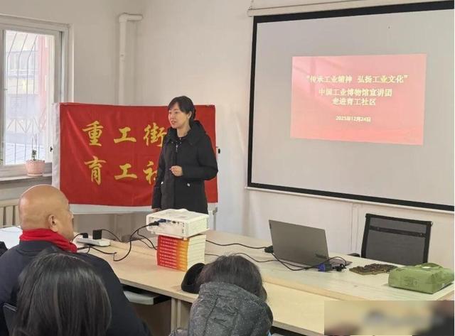 近日,中国(沈阳)工业博物馆开展“传承工业精神,弘扬工业文化”主题宣讲活动,由馆内讲解员、志愿者组成的“工博宣讲团”走进育工社区,将承载着工业记忆的文化课堂送到居民家门口。