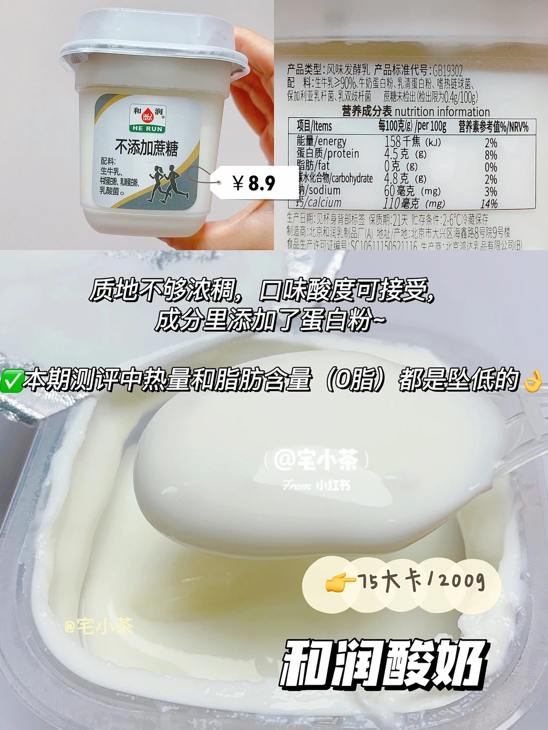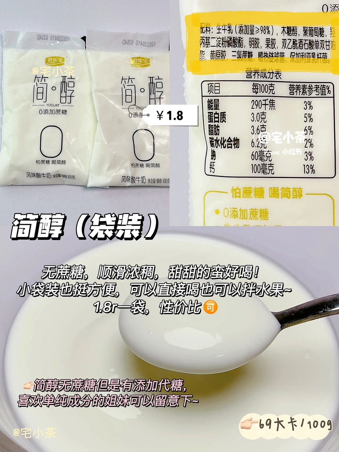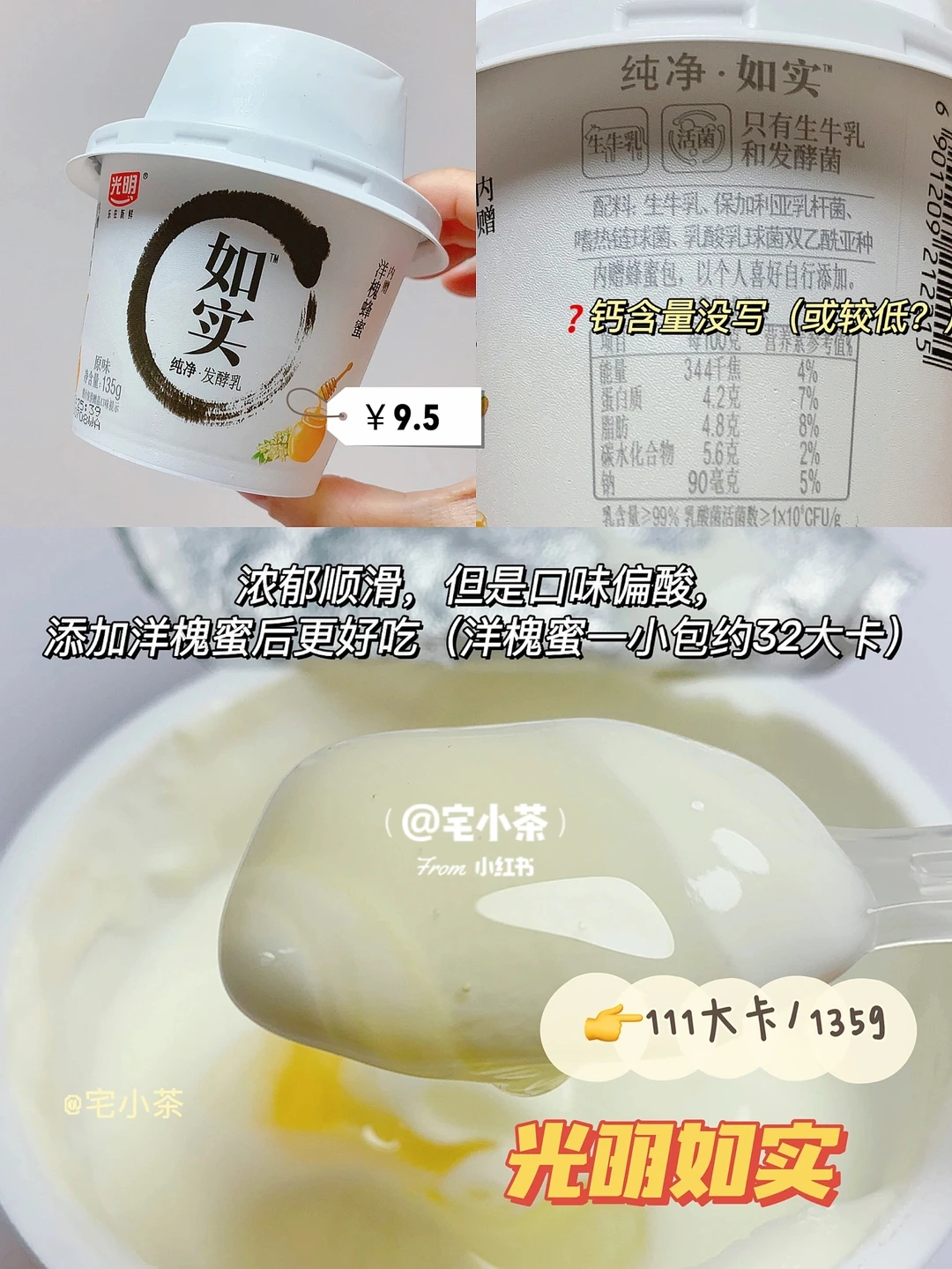 🔸浓郁顺滑,但是口味比较酸,添加洋槐蜜(一小包约32大卡)后更好吃。