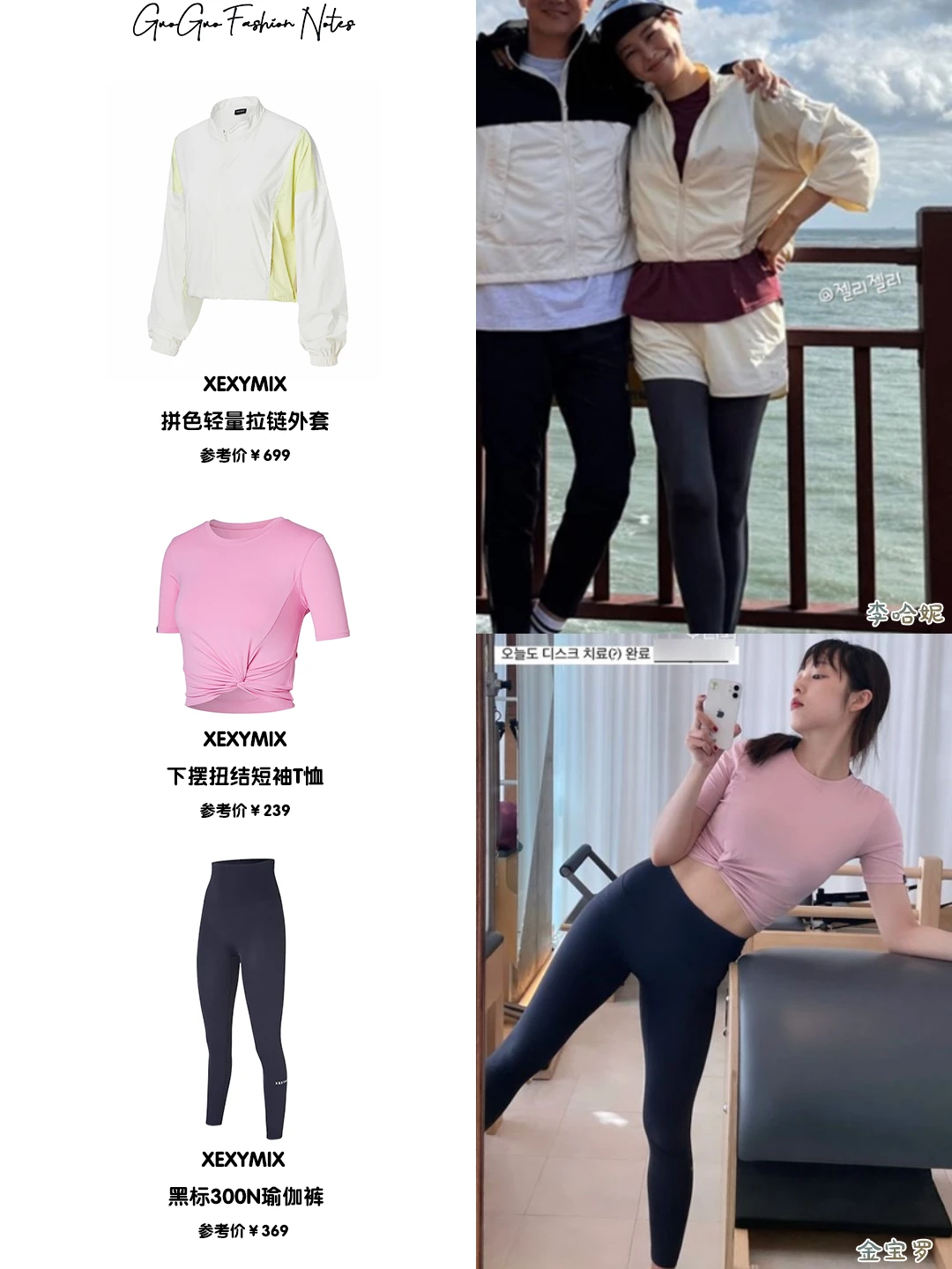 宋雨琦代言,本人机场穿过好几次的短袖T恤 还有金宝罗同款扭结T恤搭配瑜伽裤 卢允瑞的温柔浅蓝Tee李哈妮的度假拼色外套look…郑恩地、朴草娥pick的黑标360N瑜伽裤 Somi和李时安的短款BRA+微喇裤