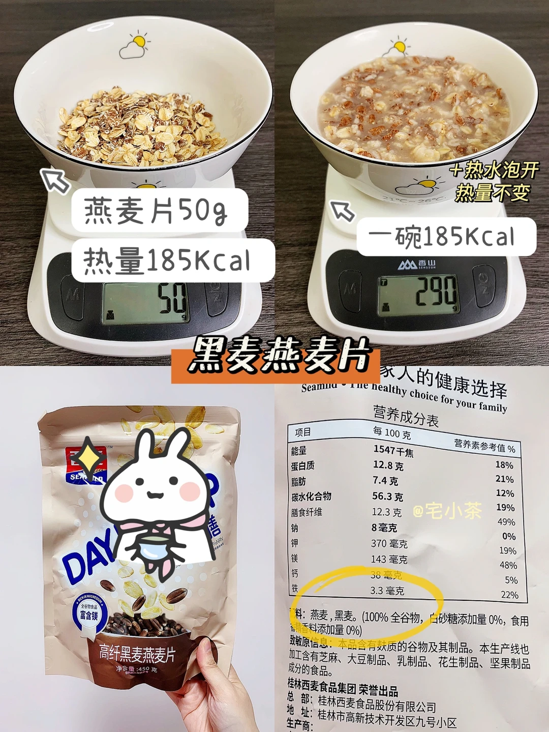 2️⃣黑麦燕麦片: