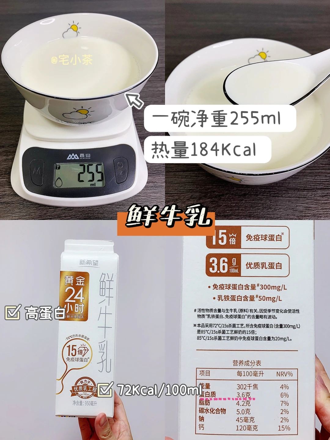 👉测评用的鲜牛乳,72大卡/100毫升