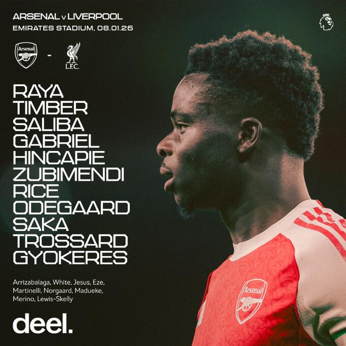 直播吧1月9日讯英超第21轮,阿森纳主场迎战利物浦,赛前双方首发公布。