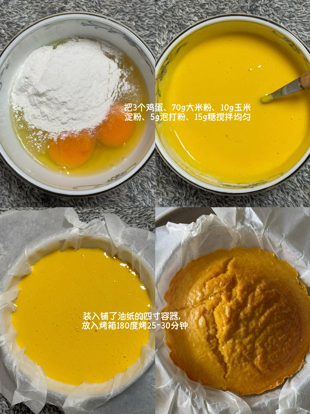 [向右R]食材:3个鸡蛋、70g大米粉、10g玉米淀粉、5g泡打粉、15g糖
