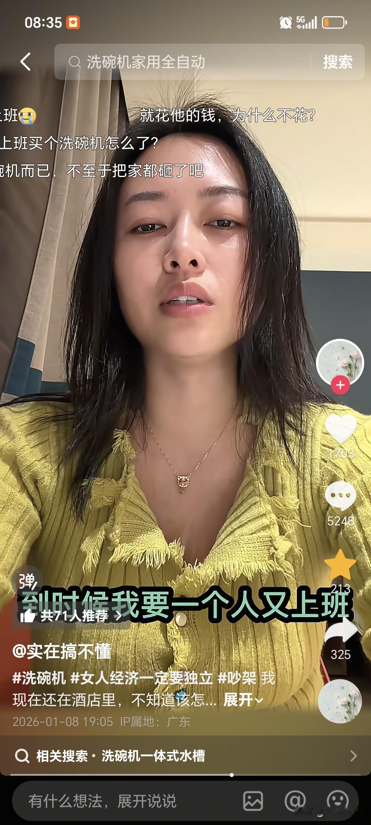 广东砸洗碗机事件,直接暴露了夫妻之间的婚姻问题!女方一直想改变男方,明知道老公有严重的逆反心理,而1500的洗碗机,在现阶段属于大件消费,没达成统一意见的条件下,偷偷给买了。 或许认为,等你到家都安装好了,还能怎么办呢?内心不接受,也忍着吧。 当客厅被砸了之后,女方把洗碗机给退了,但不回家,也不收拾残局,甚至2个孩子也不照顾,直接选择住在了酒店,摆明态度要硬刚到底,除非你服软才行。 想再一次威胁对方[捂脸]。 这就是婚姻中的磨合期吧,有的1-3年,有的3-5年,可能有的一辈子还没结束[皱眉][皱眉][皱眉]。
