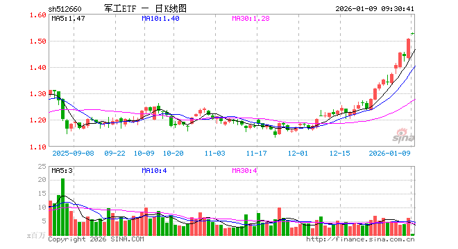 军工ETF(512660)业绩比较基准为中证军工指数收益率,管理人为国泰基金管理有限公司,基金经理为艾小军,成立(2016-07-26)以来回报为50.15%,近一个月回报为23.33%。