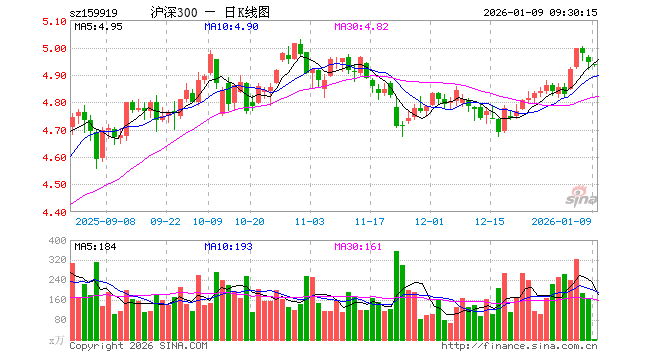 1月9日,沪深300ETF(159919)开盘跌0.12%,报4.938元。沪深300ETF(159919)重仓股方面,宁德时代开盘跌0.01%,贵州茅台涨0.33%,中国平安涨0.31%,招商银行跌0.10%,紫金矿业跌0.83%,新易盛跌3.25%,中际旭创跌3.28%,美的集团涨0.72%,东方财富涨0.00%,长江电力涨0.04%。