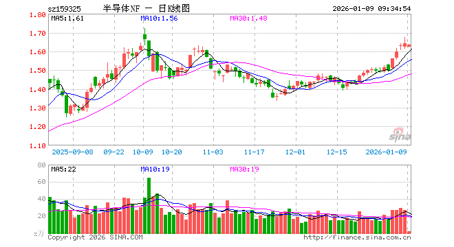 1月9日,半导体ETF南方(159325)开盘跌0.98%,报1.625元。半导体ETF南方(159325)重仓股方面,中芯国际开盘跌0.77%,寒武纪跌1.66%,海光信息跌1.52%,北方华创跌0.72%,澜起科技跌0.82%,兆易创新跌1.62%,中微公司跌3.89%,豪威集团涨0.00%,长电科技涨0.69%。