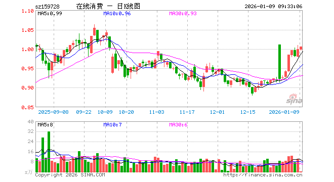 1月9日,在线消费ETF南方(159728)开盘跌0.10%,报0.998元。在线消费ETF南方(159728)重仓股方面,歌尔股份开盘跌0.68%,科大讯飞跌0.49%,巨人网络跌0.02%,恺英网络涨0.33%,昆仑万维跌0.58%,拓维信息跌1.78%,三七互娱跌1.72%,光线传媒跌0.06%,神州泰岳跌0.25%,安克创新跌0.05%。