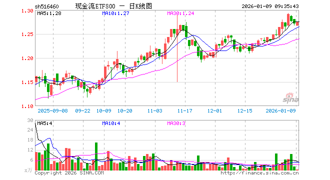 现金流ETF800(516460)业绩比较基准为中证800自由现金流指数收益率,管理人为鹏华基金管理有限公司,基金经理为寇斌权,成立(2025-04-17)以来回报为27.38%,近一个月回报为2.73%。