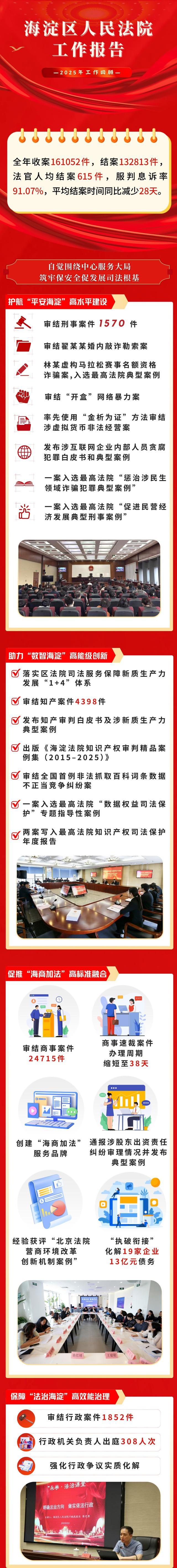 1月8日上午,海淀区第十七届人民代表大会第六次会议举行第二次全体会议。海淀法院党组书记、院长亓纪向大会作《海淀区人民法院工作报告》,报告全面回顾了2025年海淀法院主要工作完成情况,并明确了2026年的主要工作思路。