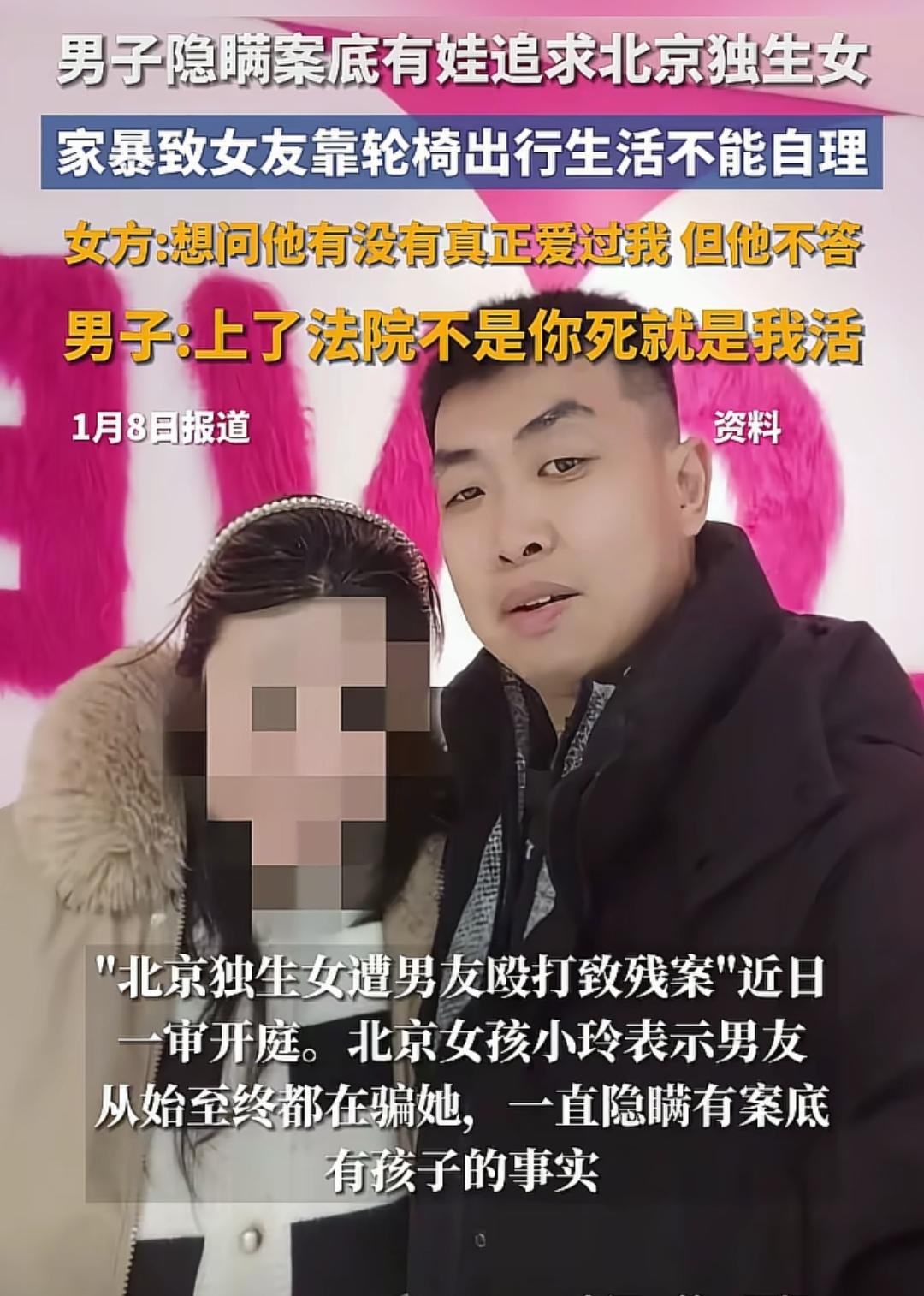 本是一段从朋友聚会开始的缘分,北京独生女小玲和男友杨某,2023年走到一起,表面登对,背后却藏了事儿——小玲一直没告诉对方,自己已有孩子,还有过往案底。 相处中,矛盾渐生。杨某脾气上来没控制住,两次动手,导致小玲的手部受了伤。一次比一次重,谁也没想到,最后竟让她落下了残疾,如今出行不得不依靠轮椅。 2026年1月7日,这事闹上了法庭。小玲的妈妈接受采访时泪流不止,她说自己当初就极力反对这段关系,可女儿没听进去。当妈的心疼又后悔,那份无奈隔着屏幕都让人揪心。 感情这事儿,坦诚是基石。藏着掖着隐患大,动了手就更没法收场。一步错,步步错,到头来没有赢家。过日子啊,还是得找个能交底、能心平气和说话的人。