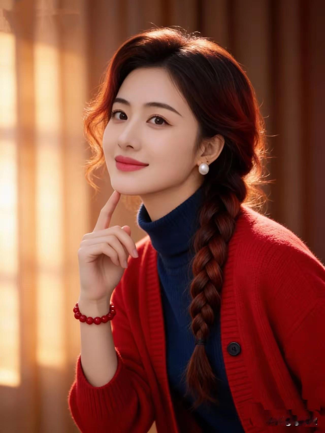 关关雎鸠,在河之洲。 窈窕淑女,君子好逑。 红衫映暖,柔韵生香。 天生丽质,国色