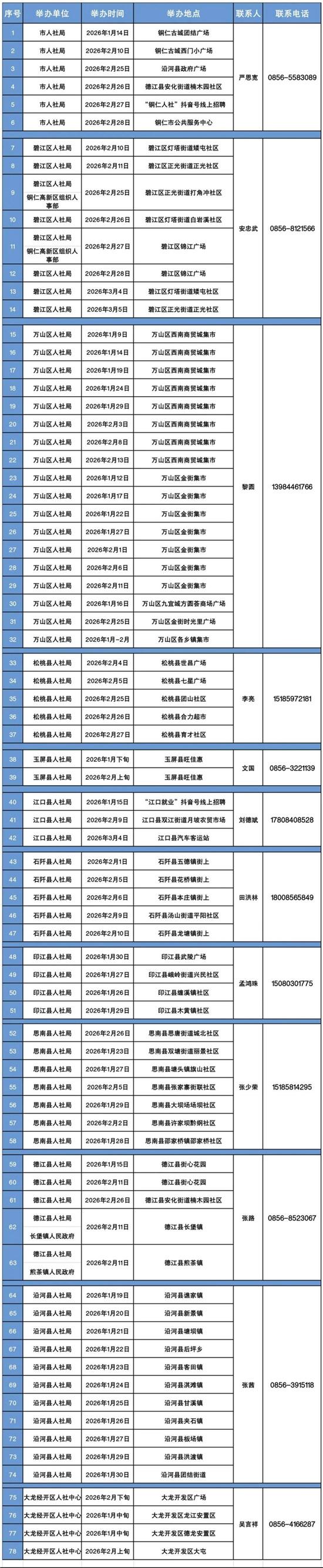 铜仁市2026年春节期间