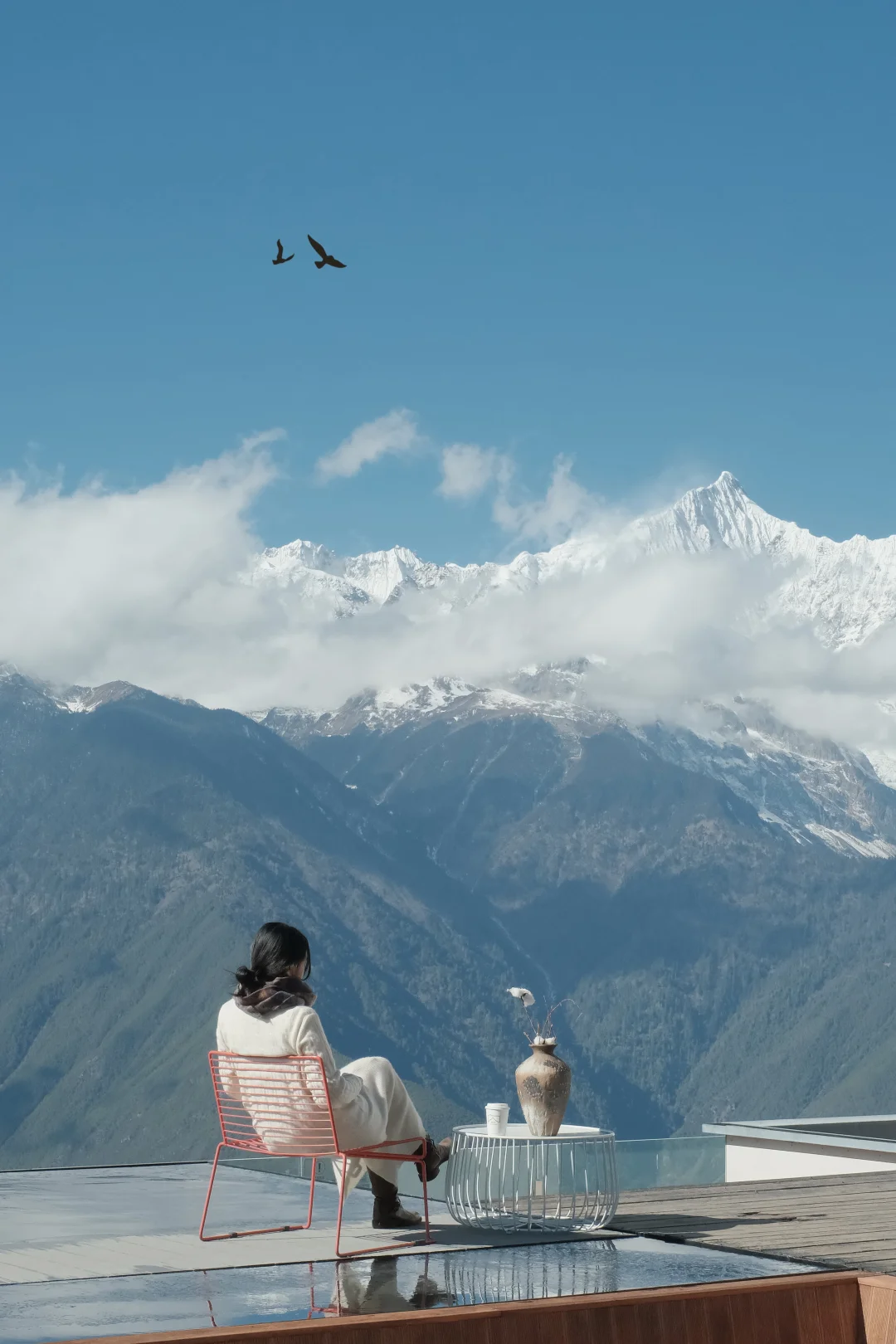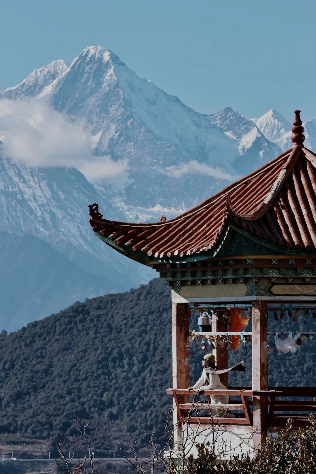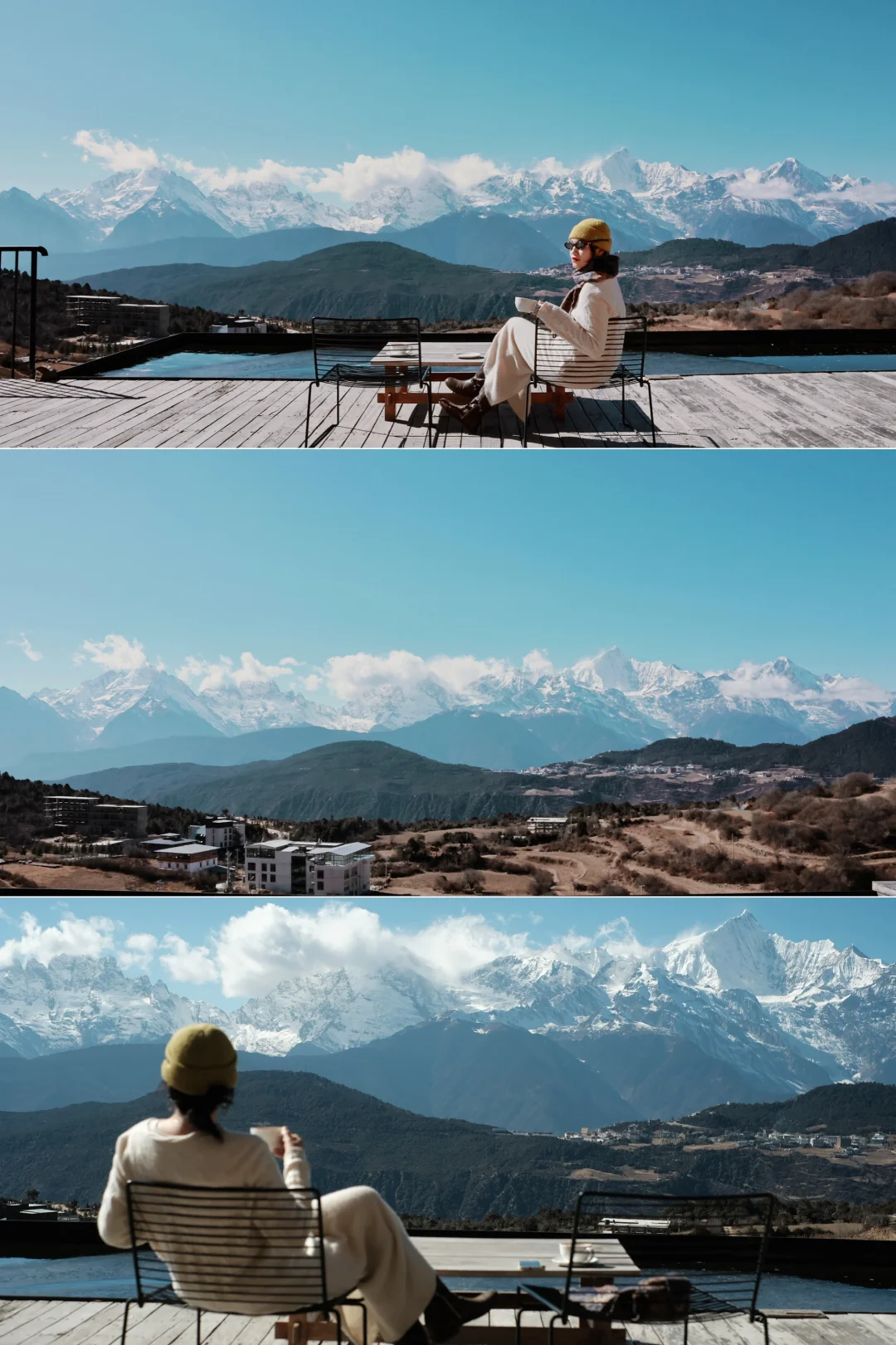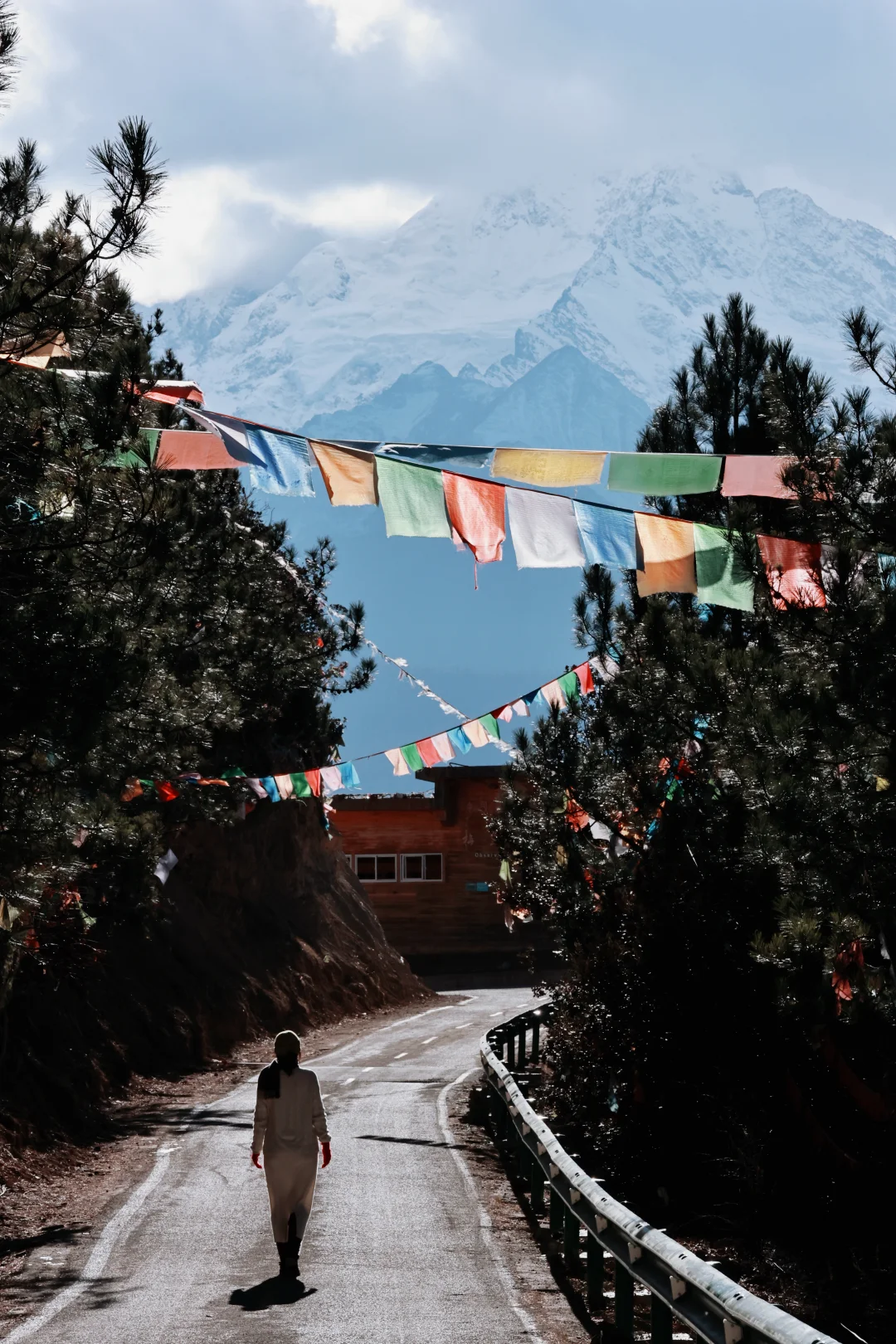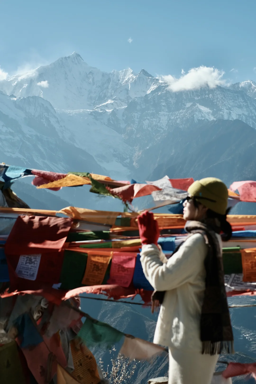 这次选的民宿有被小姐妹夸夸!住在了距离飞来寺观景台几十米的雪山醒来,房间、餐厅、咖啡都直面梅里雪山,太幸福了!对比了一下,民宿观景台比飞来寺观景台视野更好,近距离感受梅里雪山的震撼,长焦直接拍雪山证件照!看完日照金山我们又回去睡了回笼觉,一点苦没吃~房间有氧气有地暖,住了两晚竟还有点staycation的感觉!