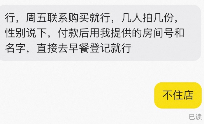 该工作人员介绍,消费者若在非官方平台购买这类早餐,会给消费者带来风险。餐厅前台会询问消费者房间号和姓名,但是如果消费者和本身住店的客人,早上都出现在餐厅就餐,就会产生一系列问题。