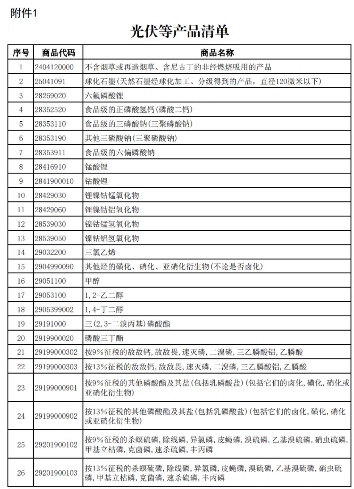 一、自2026年4月1日起,取消光伏等产品增值税出口退税。具体产品清单见附件1。
